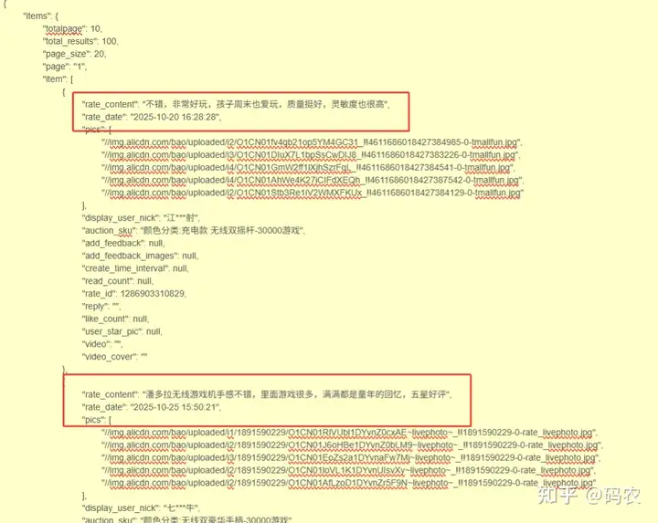 数据维度:返回评论ID、用户昵称、商品ID、评分(1-5分)、评论内容、图片/视频链接、商家回复、评论时间等 。